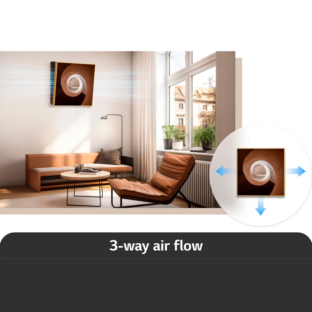 Convierte un electrodoméstico en arte con una exhibición enmarcada de madera para mostrar cualquier obra maestra. Personaliza tu pared enmarcando tus fotos favoritas para crear una galería de fotos apreciadas. Aprovecha al máximo tus fotos, carteles e impresiones favoritas colocándolas fácilmente en un elegante marco. Dispersando aire frío a través del lado izquierdo, derecho y la parte inferior del marco, proporcionando una brisa refrescante en cada rincón de tu habitación. Limpiar los espacios de difícil acceso dentro de tu aire acondicionado es fácil con el modo de Limpieza con Freeze. Utiliza hielo descongelado para eliminar el polvo y los contaminantes que causan olores, reduciendo las bacterias dañinas y dejando tu hogar más fresco.