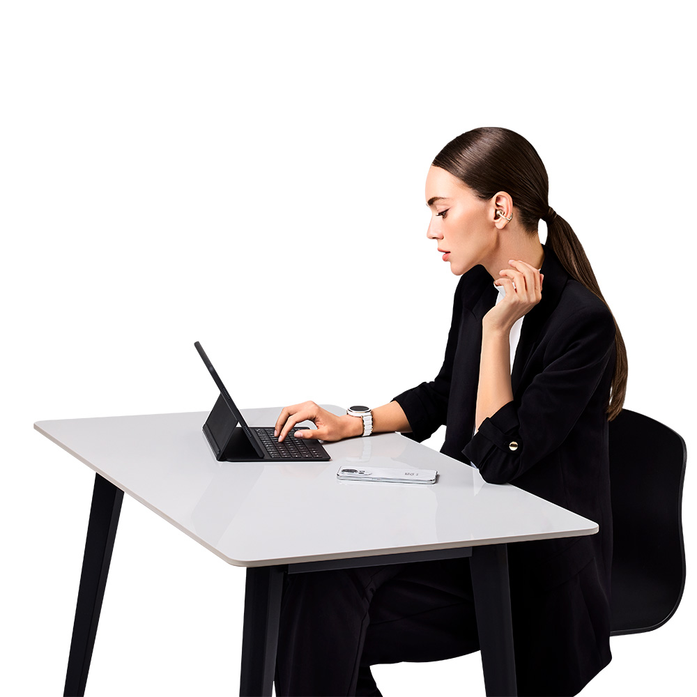 Una forma esférica minimalista les da a los auriculares una apariencia elegante y un diseño ergonómico los hace cómodos y livianos. La elegante textura mate del estuche de carga se complementa con las elegantes combinaciones de colores. Cada auricular pesa aproximadamente 5.6 g y el diseño de ajuste abierto permite a tus oídos respirar, mientras que los materiales se mantienen llenos de color y libres de manchas. Los auriculares son intercambiables gracias a su tecnología autoadaptativa para los canales izquierdo y derecho, lo que significa que puedes usarlos en cualquier oreja. Superando más de 25 mil pruebas de confiablidad, el C-bridge, hecho de una aleación de níquel y titanio con memoria de forma, se ajusta suavemente a la mayoría de las orejas.