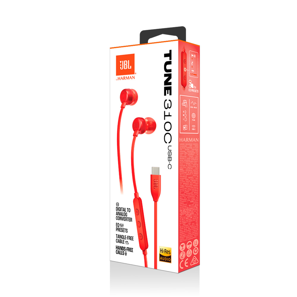 Presentamos los auriculares intraaurales JBL Tune 310C USB-C. Son ligeros, cómodos y compactos. Un par de drivers dinámicos de 9 mm ofrecen el potente sonido JBL Pure Bass, mientras que la compatibilidad con audio de alta resolución garantiza una gran calidad de sonido. La conexión USB-C los hace compatibles con una gran variedad de dispositivos como PC, móviles y dispositivos de juego. Además, los tres botones en el cable plano antienredos te permiten controlar la reproducción de música, el ajuste de volumen y los preajustes EQ, así como responder llamadas donde quieras con el micrófono integrado. Por todo esto, los JBL Tune 310C USB-C serán tus mejores compañeros, en el trabajo, en casa y donde sea.