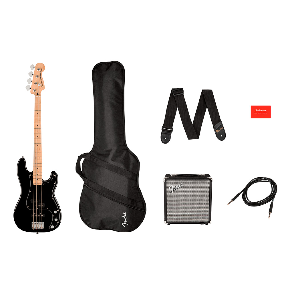 - Incluye: suscripción gratuita de 3 meses a Fender Play, amplificador de bajo Rumble 15, funda acolchada, cable de instrumento de 10 pies y correa de instrumento.