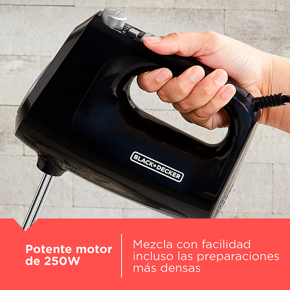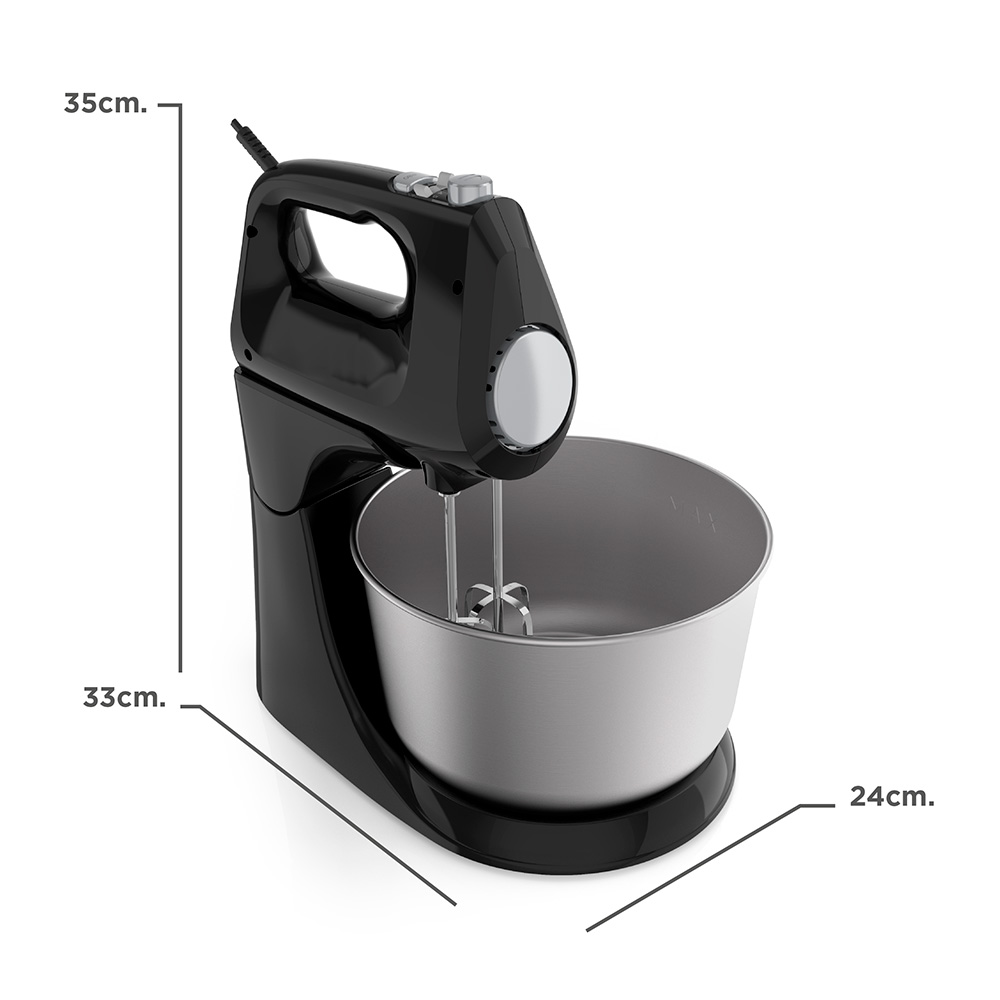 Descubre la versatilidad y rendimiento con la Batidora en negro, fácil de convertir de batidora con base a batidora manual. Incluye 2 batidores de alambre y 2 ganchos para masa, junto con un recipiente giratorio de acero inoxidable de 3.5L que ofrece comodidad y durabilidad. Con 5 velocidades y un potente motor de 250W, esta batidora se adapta a tus necesidades culinarias. Además, cuenta con talón de descanso, soporte para el recipiente y piezas lavables en lavavajillas para una limpieza sin complicaciones, opera eficientemente con 120V.