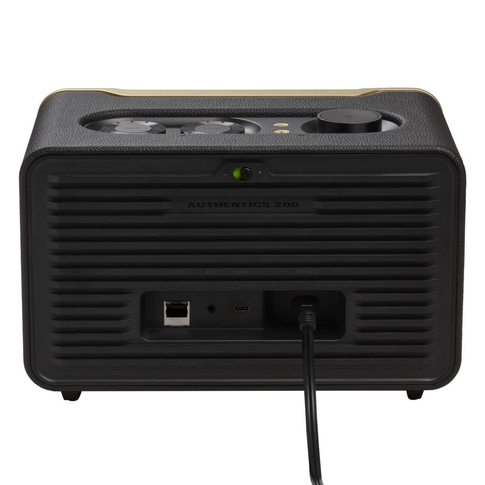 Marca tendencia con un sonido potente y un estilo retro inconfundible. El altavoz JBL Authentics 200 recuerda a los emblemáticos modelos de los años 70 de JBL, con una rejilla Quadrex, un receptáculo de imitación piel personalizado y un marco de aluminio de primera calidad, ahora con un rendimiento y versatilidad aún mejores. El impresionante diseño retro queda genial en cualquier habitación y ofrece un sonido increíble. Sube la música y obtendrás un sonido grande y equilibrado, una claridad increíble y graves profundos. Con Google Assistant y Amazon Alexa disponibles simultáneamente, puedes reproducir tu música favorita, controlar tus dispositivos de casa inteligentes y mucho más, dejando las manos libres y usando solo tu voz.