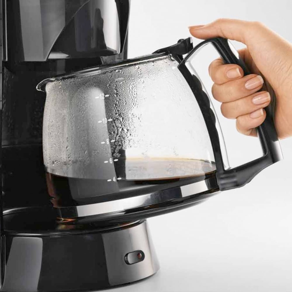 - Color negro. Filtro permanente. Interruptor Iluminado de encendido. Indicadoras de nivel de agua. Jarra de vidrio. Capacidad para 12 tazas. Material de plástico. Selector de potencia de preparación. Dimensiones 12.3×8.7×9.8 pulgadas.