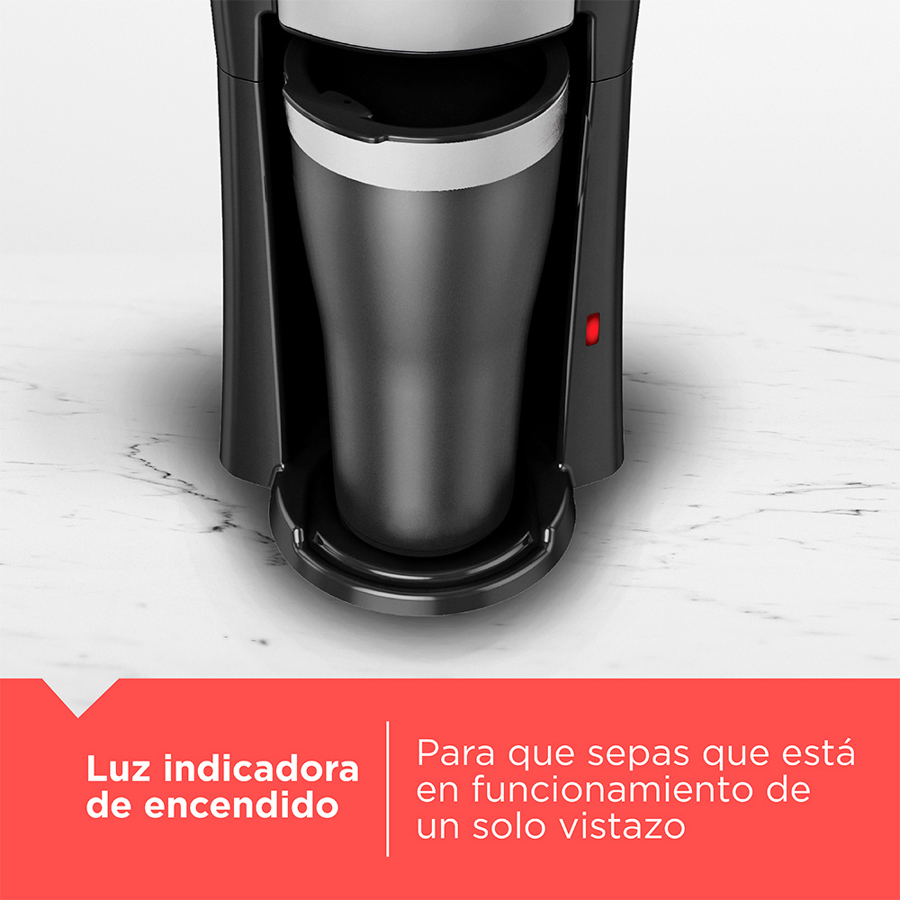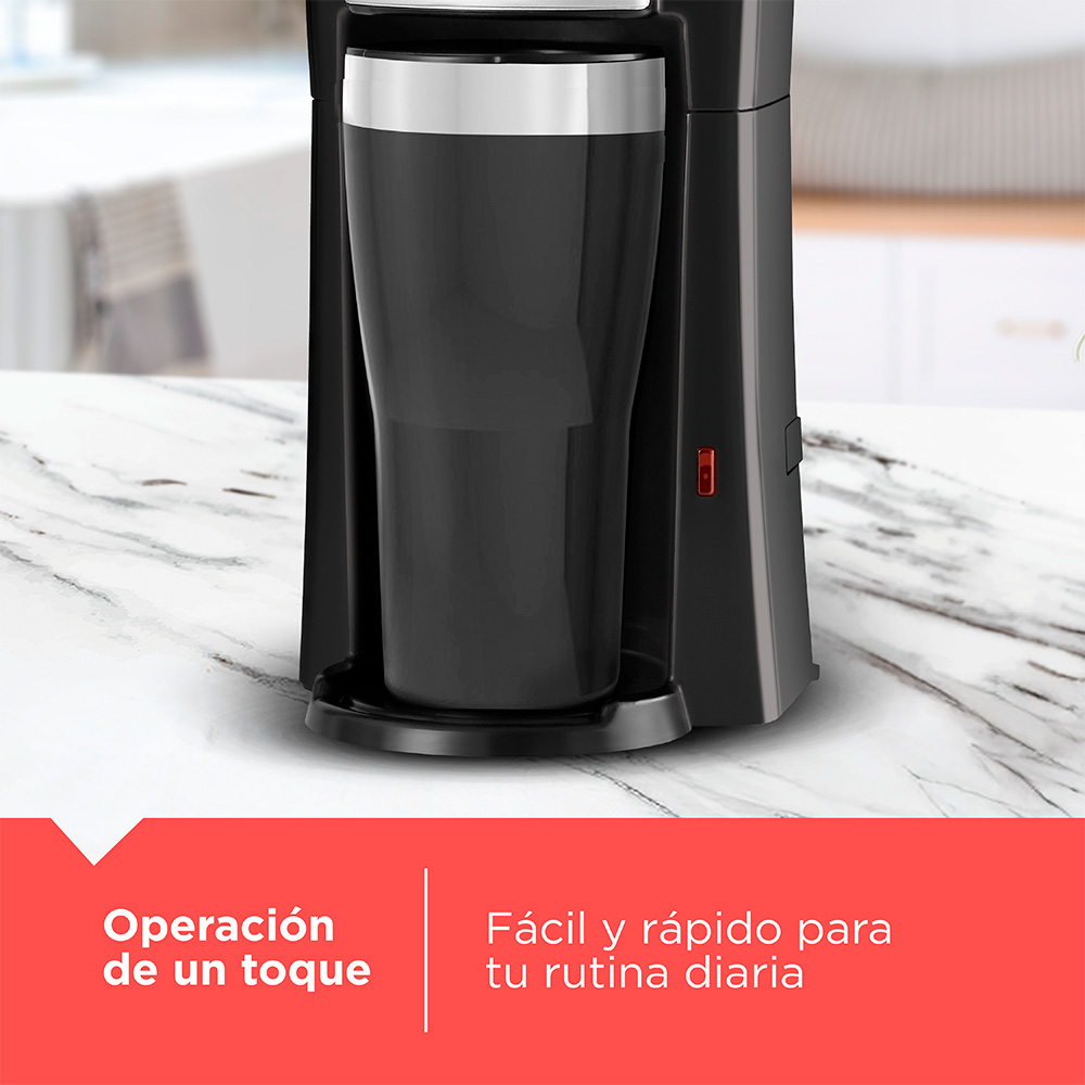 Es una cafetera ideal para un estilo de vida activo y en movimiento. Use café molido o sobres de café pre-empaquetados para preparar directamente en la Taza Termo de 16-oz. que cabe en la mayoría de los sostenedores de taza del coche. La práctica operación de un solo toque y características útiles como una cesta de filtro extraíble con filtro permanente incluido harán que su ritual de café de la mañana sea una experiencia instantánea de elaboración. Esta máquina tiene tanto las piezas de lavavajillas y el apagado automático.