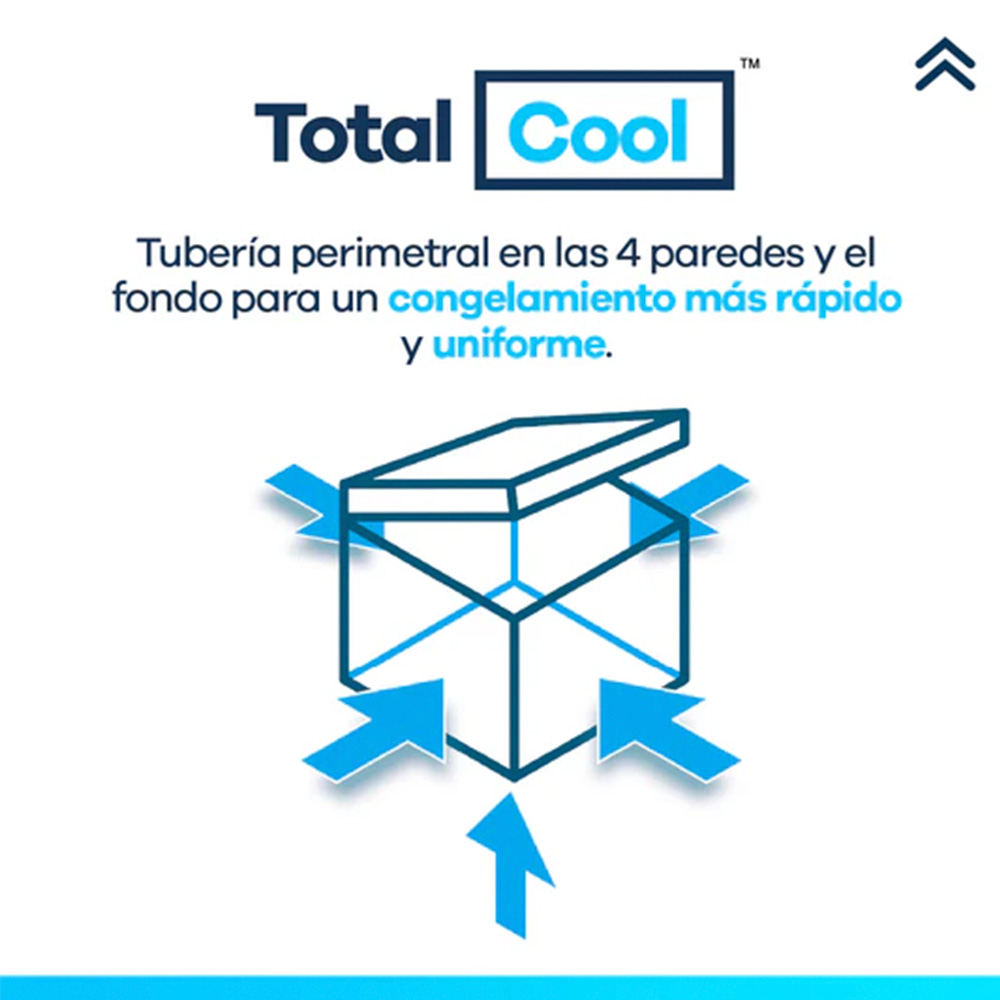 - Enfriamiento Total Cool: Sistema de tubería fría perimetral en las 4 paredes y base, Frío uniforme, sin zonas muertas.