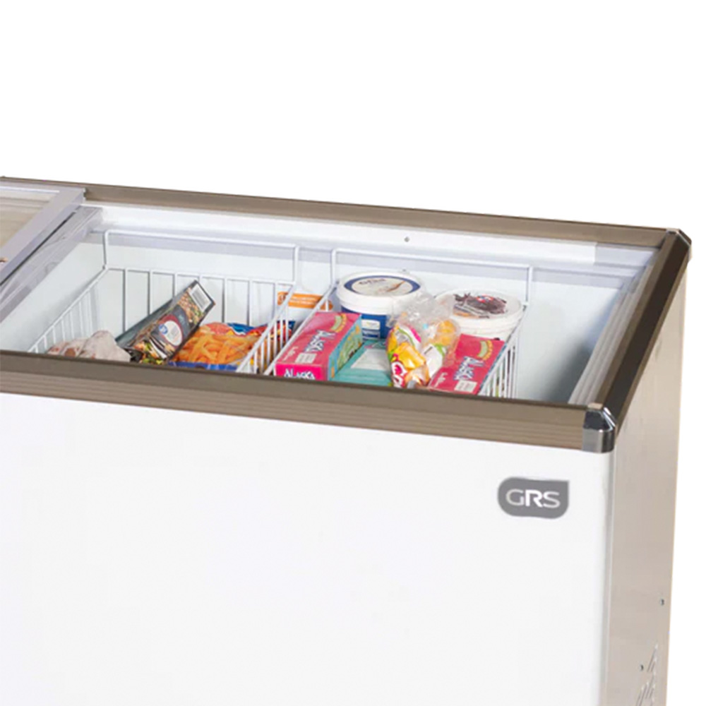 El GRS GS 550 de 20 pies es el congelador ideal para exhibir productos en tiendas, mercados o puntos de venta de alto tráfico. Con su tapa de vidrio corrediza, tus clientes pueden ver fácilmente lo que ofreces y elegir por sí mismos. Y con su cerradura integrada, tu inventario está siempre seguro.