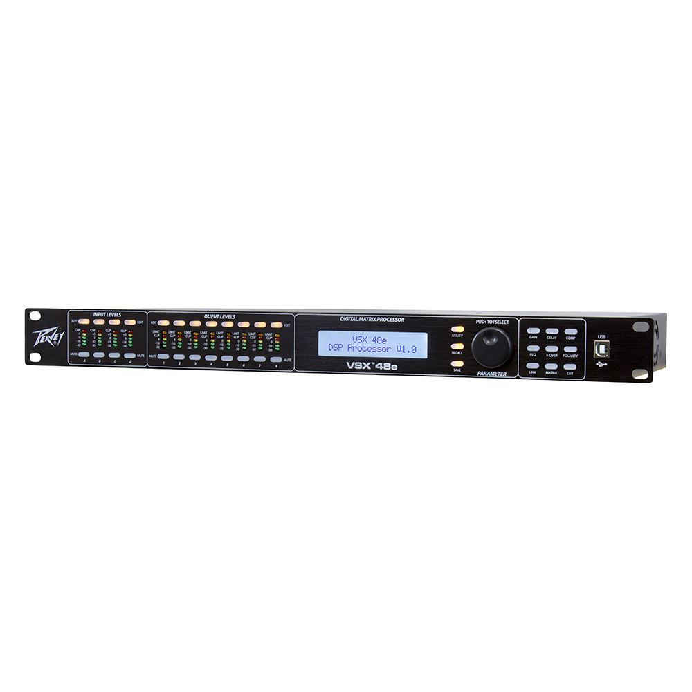 Los procesadores VSXe son sistemas de gestión de altavoces basados en DSP que cuentan con una velocidad de muestreo de 96kHz y un procesador DSP de punto flotante para una respuesta de filtro precisa silenciosa. Los filtros crossover son totalmente ajustables y cualquier entrada se puede enrutar a cualquier salida. El programa de editores VSX para PC permite la configuración y el funcionamiento remotos completos a través del puerto USB del panel delantero o por el panel trasero conexión de red Ethernet. Los archivos también se pueden guardar y cargar utilizando este software de interfaz.