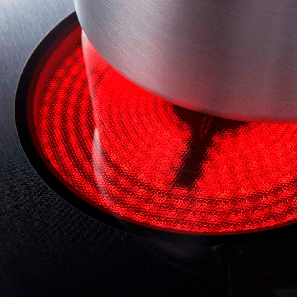 - Con sus 4 quemadores de vitrocerámica en color negro.