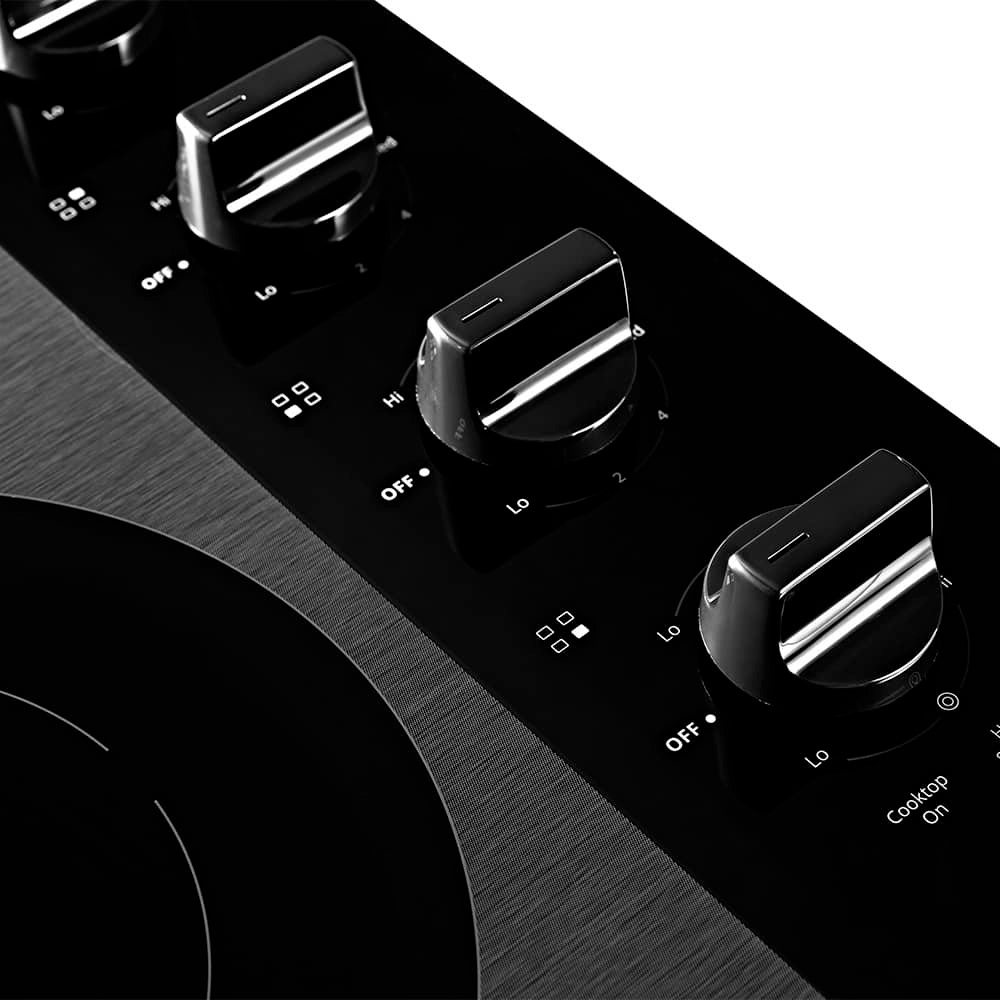 Parrilla Eléctrica de 24” con 4 elementos de calor, 3 estándar y 1 doble. Cuenta con cubierta de cerámica, perillas aptas para lavavajillas, luz indicadora de superficie caliente y FlexHeat™ Elemento Radial Doble.