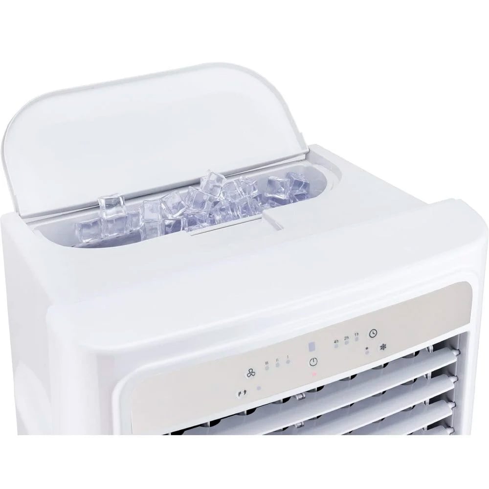 - Este enfriador de interiores es un modelo portátil y de bajo consumo, diseñado para refrescar habitaciones de hasta 25 m2: la unidad es ligera y se adapta al calor del verano o a la sequedad del invierno.