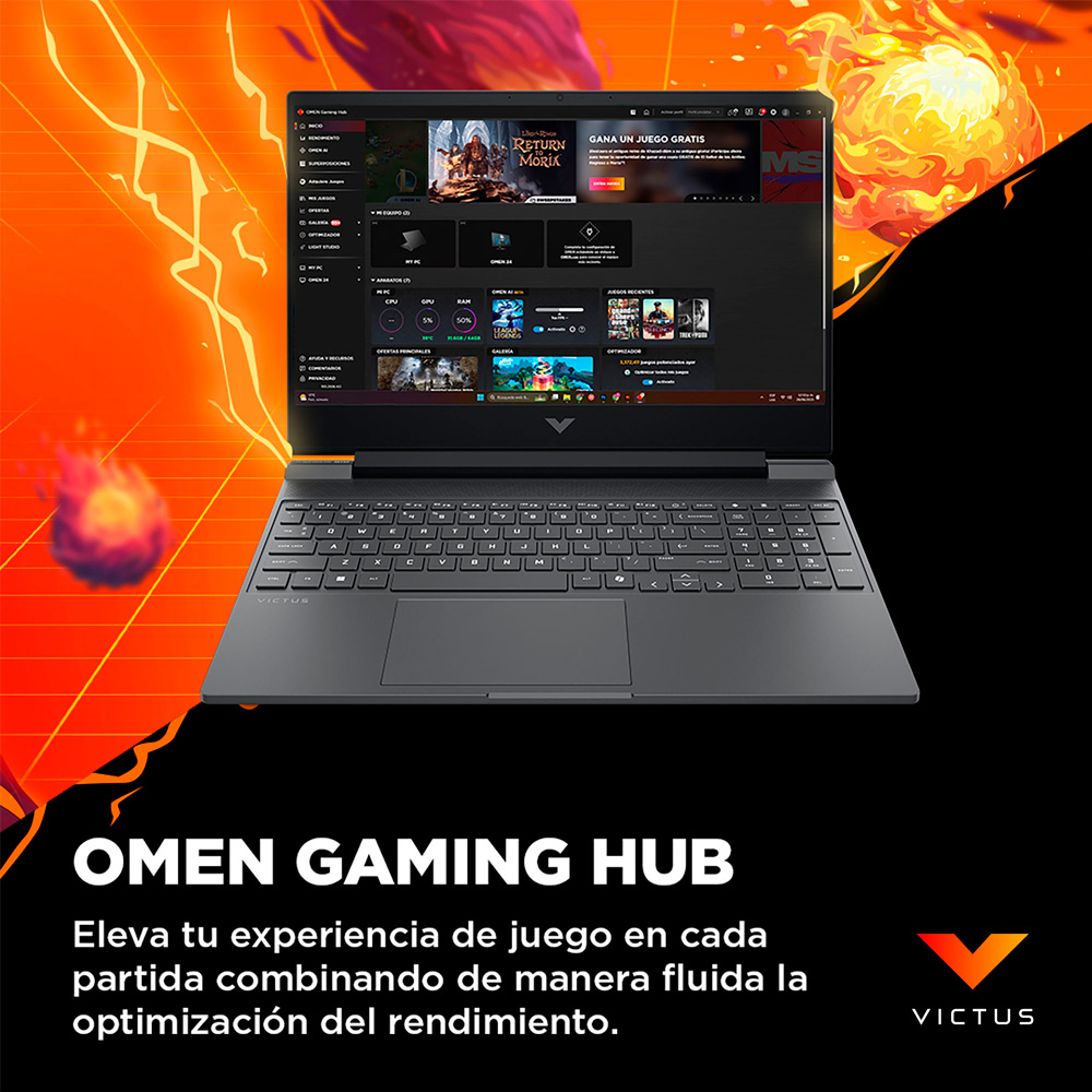 Laptop Gaming Victus 15.6″ FHD, AMD Ryzen 5, 8 GB RAM, 512 GB SSD, Windows 11, 15-fb3009la