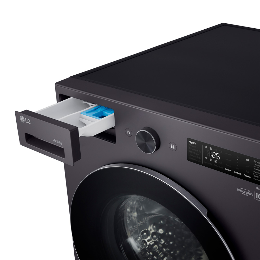 Carga frontal de 20Kg, Su motor LG Direct Drive™ ofrece un funcionamiento silencioso y duradero. Con sistema de lavado 6Motion DD que moverá la tina en múltiples direcciones, brindando a las telas el cuidado adecuado