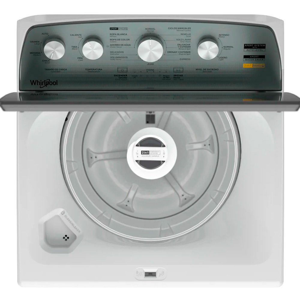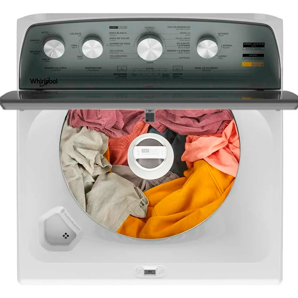 Lavadora 20 kg Carga Superior Whirlpool Xpert Dual Agitator 2 en 1. Esta lavadora de carga superior (8MWTW2054WRM) está diseñada para ofrecer un lavado eficiente, adaptable y con ahorro de agua. Incorpora tecnología Xpert Systems y el exclusivo Xpert Dual Agitator 2 en 1, que permite personalizar el tipo de lavado según las necesidades de cada carga. Ajusta el lavado según tus prendas con el único agitador removible del mercado. Con el ciclo Xpert Water Saver reduces el consumo de agua en cada lavado. Logra una limpieza profunda y cuidadosa gracias a ciclos especializados que protegen tu ropa blanca, de color o delicada. Disfruta de un uso más cómodo con su diseño de consola renovado que mejora la visibilidad y el manejo del ciclo.