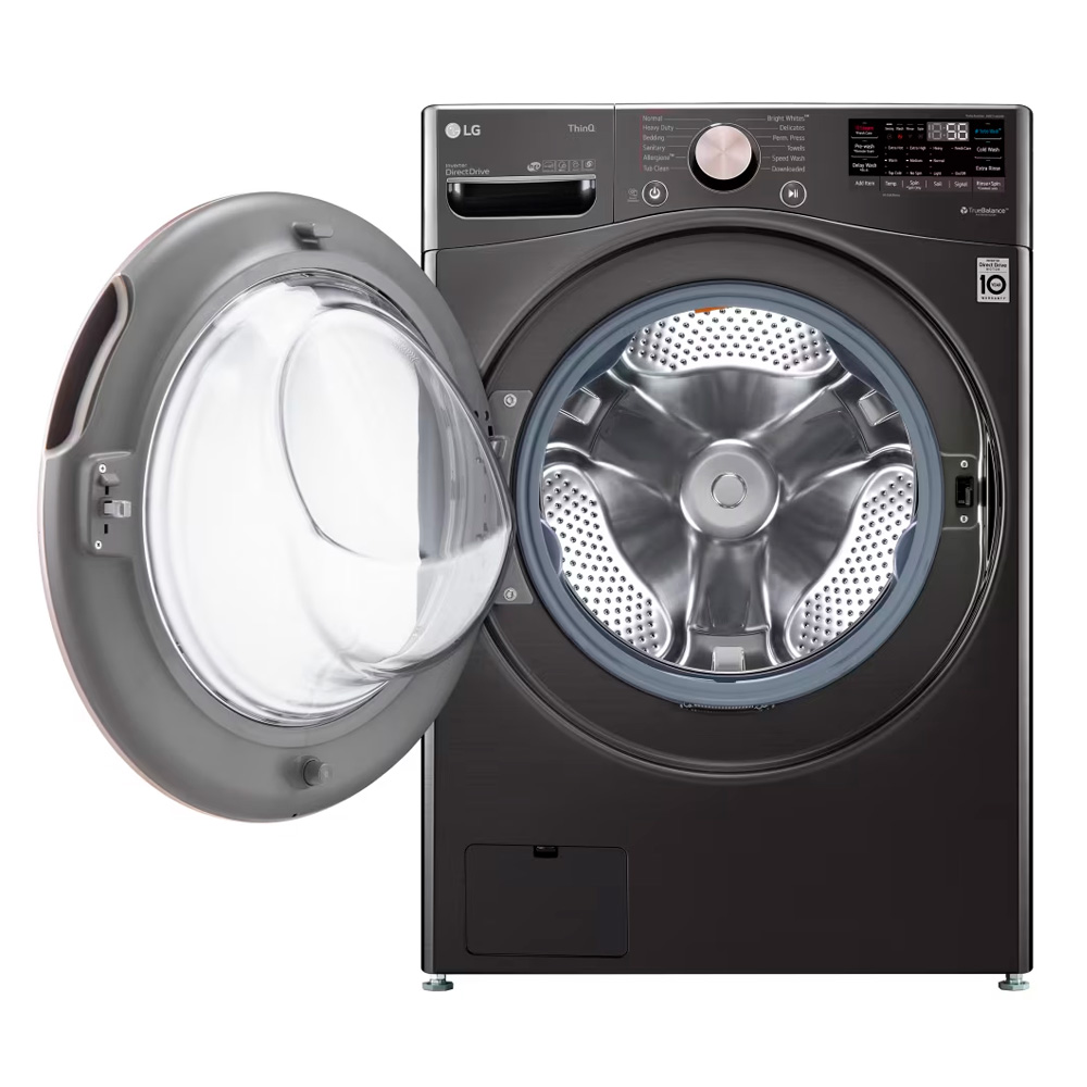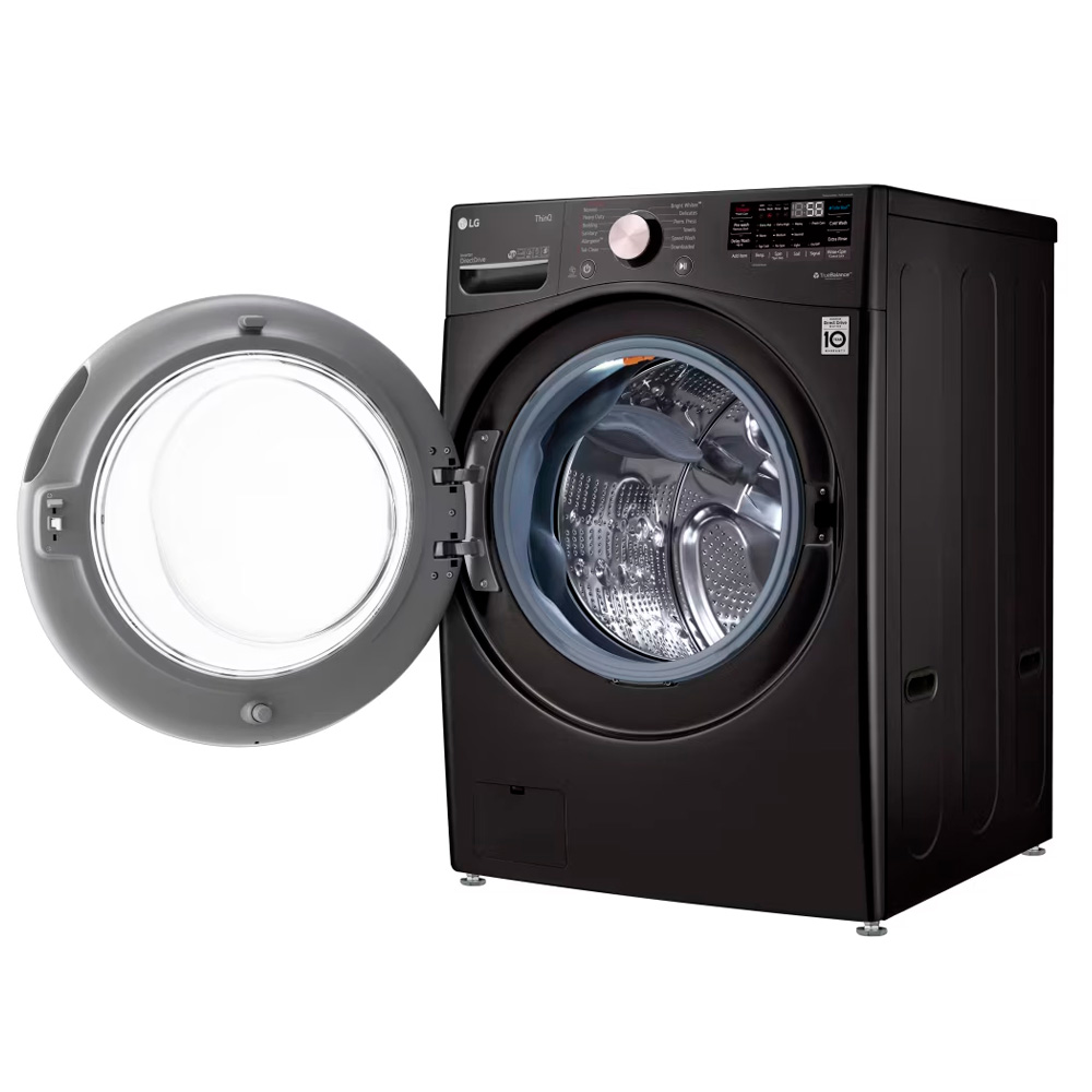 La lavadora ofrece 22 kg de capacidad de carga frontal, ideal para familias grandes o ropa voluminosa. Su motor Inverter Direct Drive reduce ruido y vibración, mejora la durabilidad y optimiza el consumo energético. Integra tecnologías avanzadas TurboWash y 6 Motion DD para un lavado eficiente y cuidado de las telas. Incluye función Steam, que elimina alérgenos e higieniza la ropa. Con conectividad ThinQ (Wi-Fi) puedes controlar y monitorear ciclos desde el móvil. Pantalla LED y opción de agregar prendas olvidadas durante el ciclo. Diseño moderno negro con puerta de vidrio templado y funciones inteligentes para mayor practicidad.