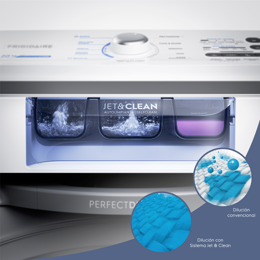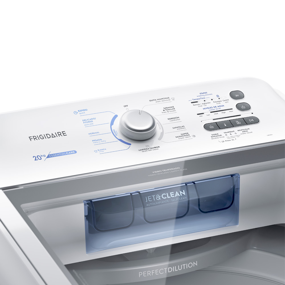 Carga superior, 20Kg, con agitador, Tecnología Jet&, Clean Dispensador AutoClean, Sistema de lavado con Ciclos Rápidos