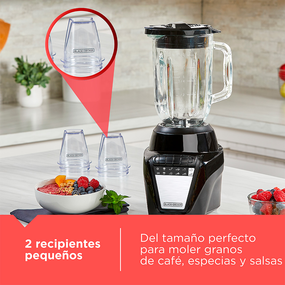 Licuadora BLACK+DECKER Negra – 700W, 8 Velocidades + Pulso, Jarra de Vidrio 1.25L, Jarra de Plástico 1.65L – 120V