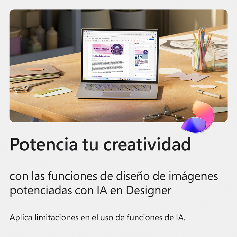 - Incluye Designer, aplicación de diseño y edición de imágenes, potenciada con IA.