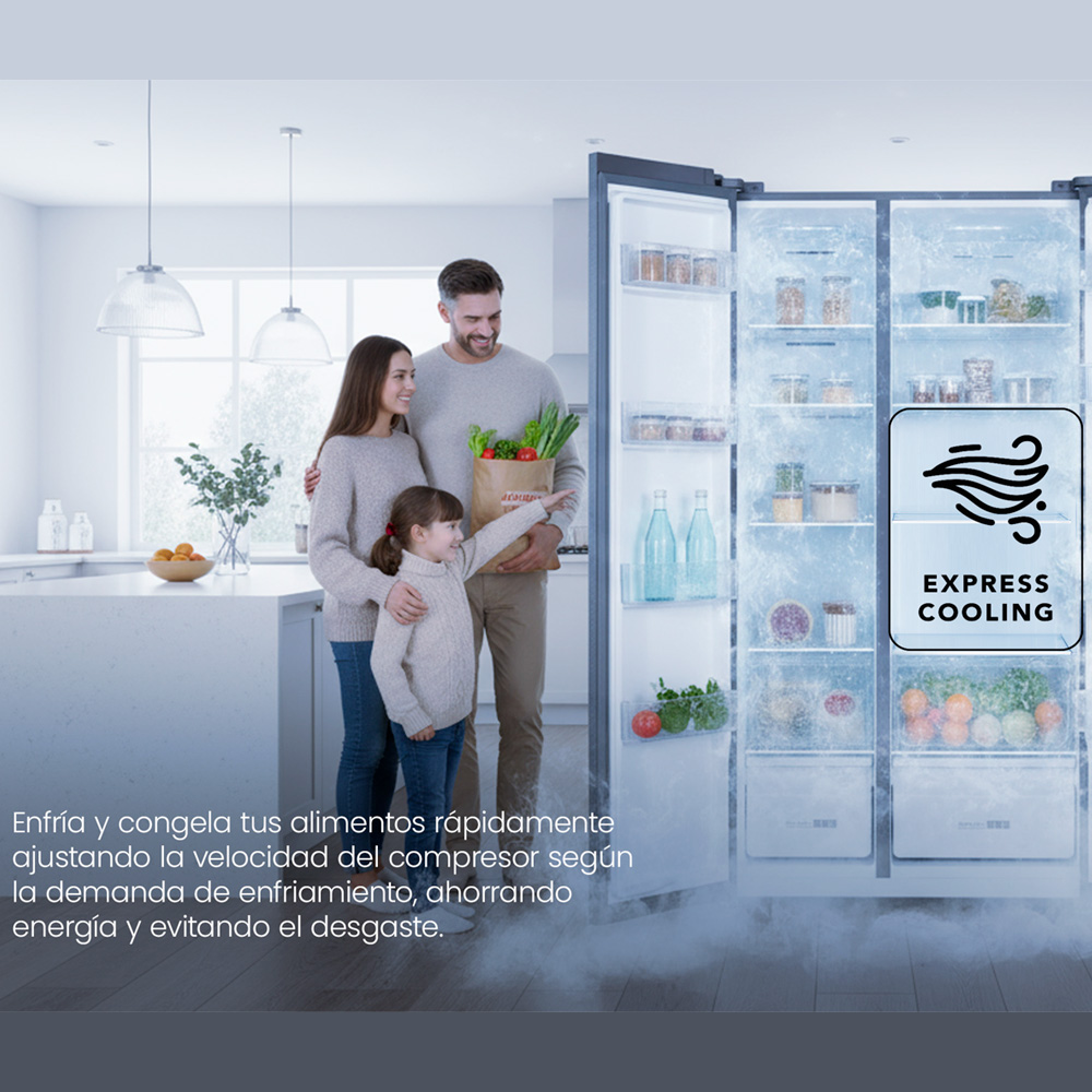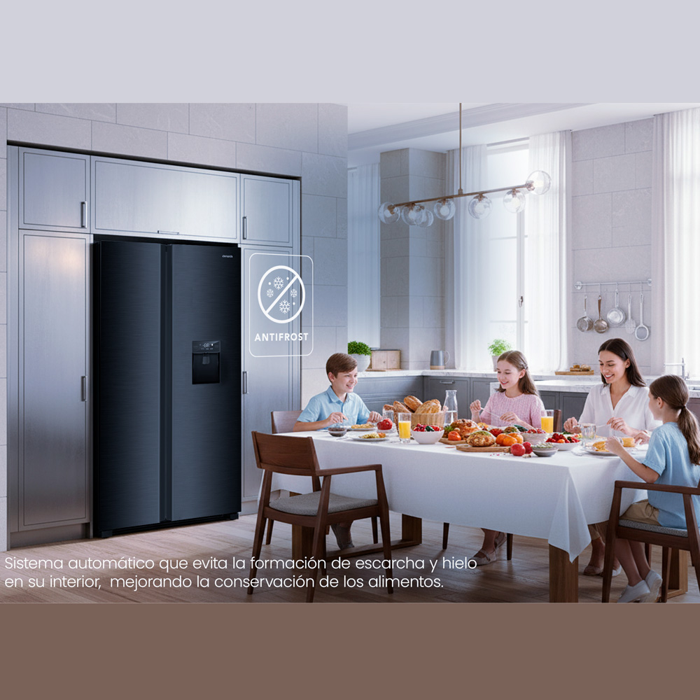 Black Edition con dispensador de agua. Espacio y diseño que imponen elegancia. Enfría y congela tus alimentos rápidamente ajustando la velocidad del compresor según la demanda del enfriamiento, ahorrando energía y evitando el desgaste. Sistema automático que evita la formación de escarcha y hielo en su interior, mejorando la conversación de los alimentos.
