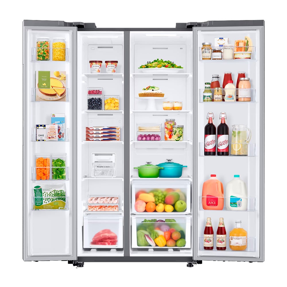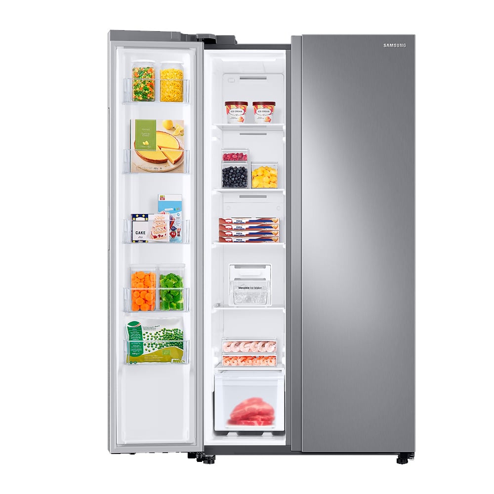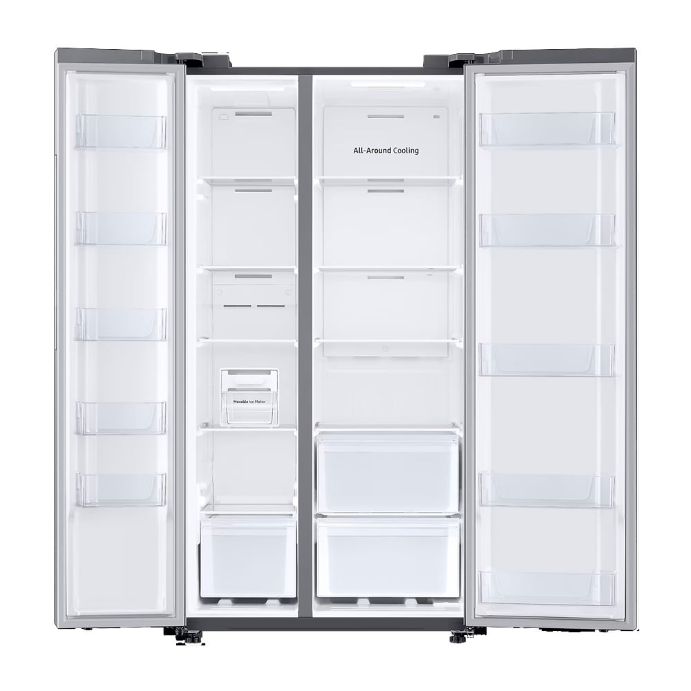 El Samsung RS23T5B00S9/AP es un refrigerador Side-by-Side de 22.8 pies³ (700 L) que ofrece más espacio interno sin cambiar su tamaño exterior, gracias a su innovadora SpaceMax Technology™ Su compresor Digital Inverter, eficiente y duradero, adapta la velocidad según las necesidades de enfriamiento, reduciendo el consumo de energía hasta en un 50 %, con certificación de funcionamiento de hasta 21 años y 20 años de garantía del compresor. Cuenta con Enfriamiento Envolvente (All-Around Cooling) y conducto trasero plano, que aseguran una temperatura uniforme en todo el equipo y aprovechan mejor el espacio disponible. Además, incluye las funciones rápidas Power Cool y Power Freeze, ideales para enfriar bebidas o congelar alimentos al instante.