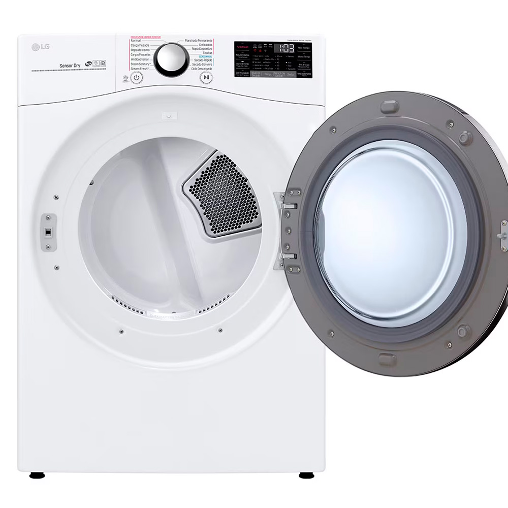 La secadora de carga frontal con 22 kg de capacidad ofrece secado eficiente para prendas grandes y cargas familiares. Incorpora TurboSteam y SteamFresh para refrescar ropa, reducir arrugas y eliminar olores con vapor, además de Steam Sanitary que reduce bacterias. El Sensor de Secado ajusta automáticamente el tiempo según humedad y Flow Sense alerta sobre bloqueos en conductos. Conectividad ThinQ Wi-Fi permite controlar, monitorizar y descargar ciclos desde el móvil. Su diseño moderno en negro con puerta de cristal templado incluye panel LED táctil y funciones inteligentes como Smart Diagnosis. Secado uniforme con calentador eléctrico y facilidades como puerta reversible. Perfecta para optimizar tiempo y cuidado de tejidos.