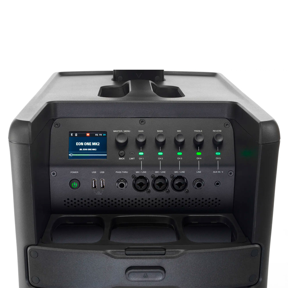 El PA de columna alimentado por batería JBL EON ONE MK2 incluye un paquete acústico líder en su clase, mezclador digital de 5 canales, DSP dbx y Lexicon, funciones Bluetooth y control de aplicación universal en un paquete liviano y portátil que se puede llevar en una mano.