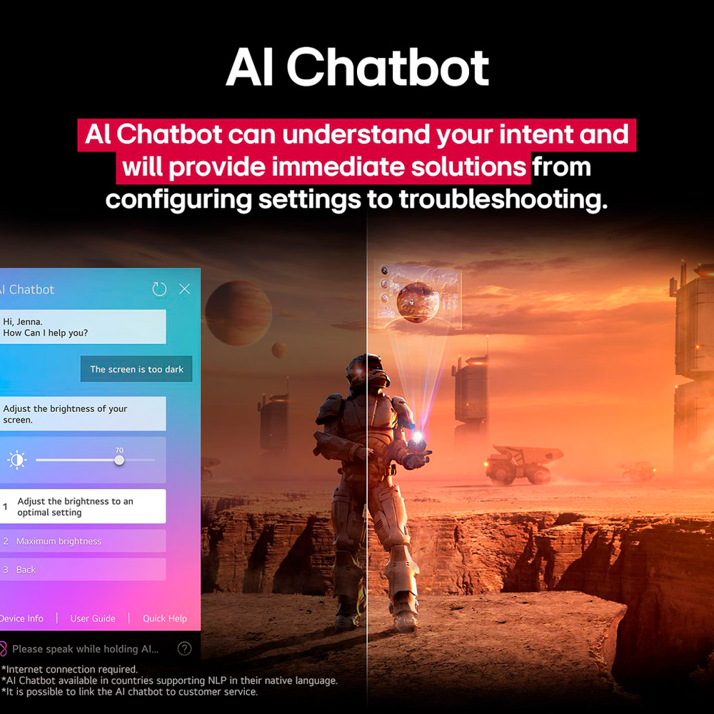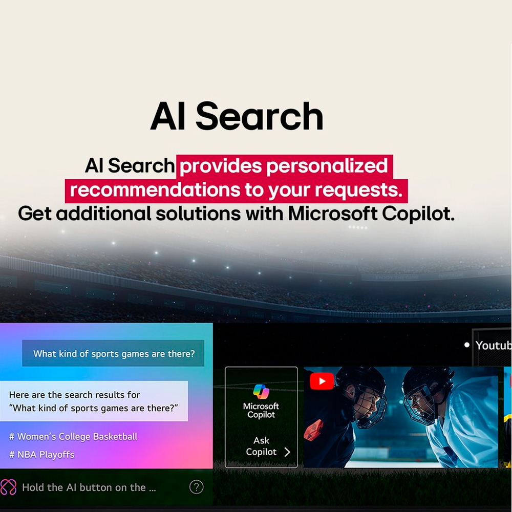 - AI para optimización total Ajustes automáticos de imagen y sonido para la mejor experiencia