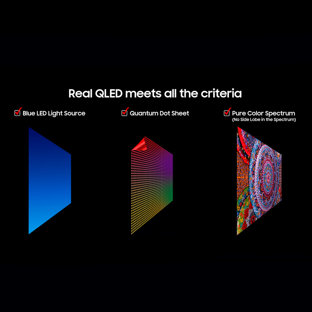 • QLED con 100 % Color Volume (Quantum Dot certificado por VDE): reproduce más de mil millones de tonalidades fieles sin importar el nivel de brillo.