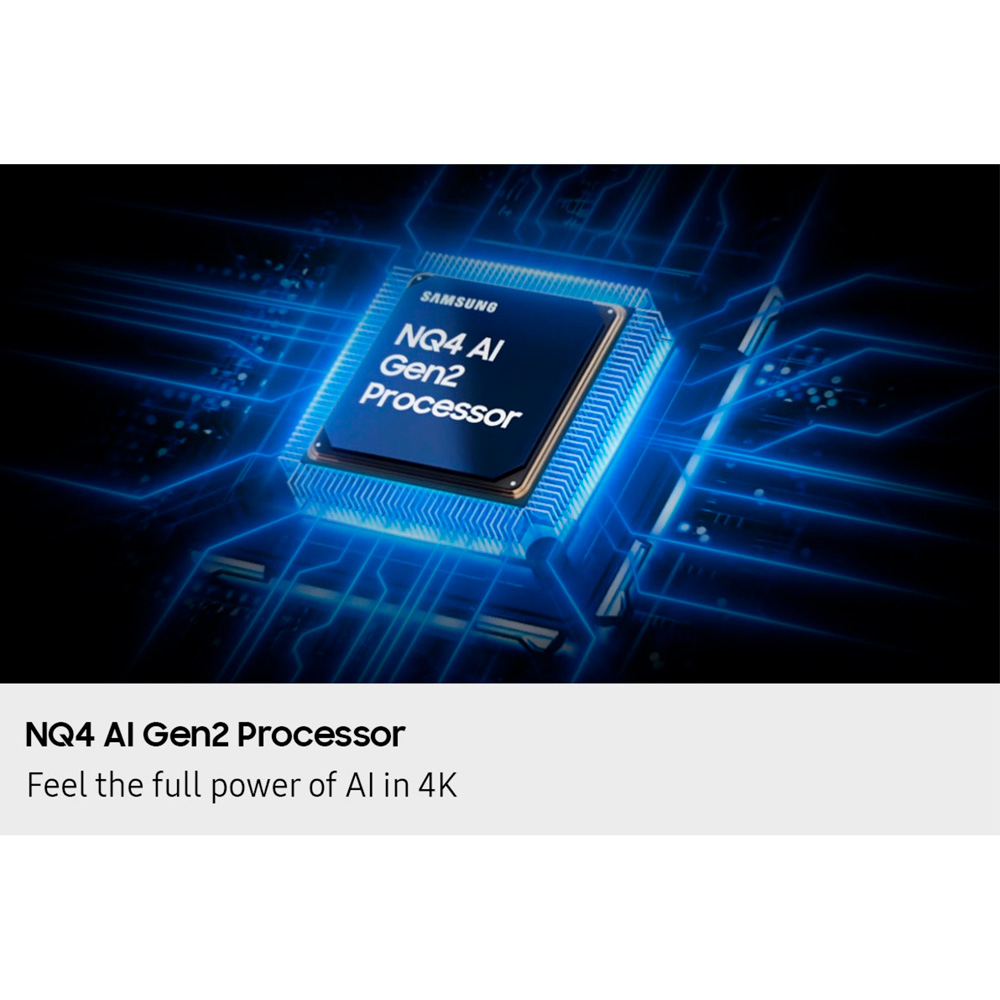 - Procesador NQ4 AI Gen2 que utiliza redes neuronales para optimizar automáticamente imagen y sonido, además de escalar contenido a 4K en tiempo real.